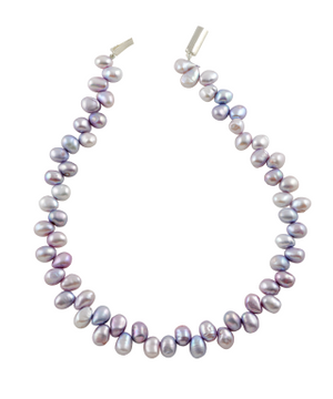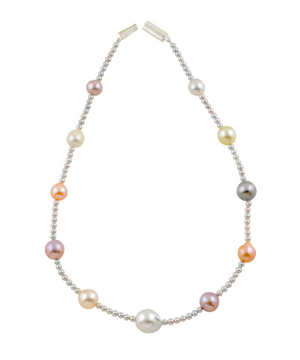 Grey Baroque Pearl Station Necklace (Feshwater Baroque Pearls on Silver Chain)