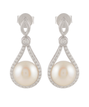 Pearl Everheart ( Heart motif pearl drop earrings with CZ detailing )