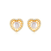 Double Layer Heart Shaped Pearl Earrings With Pendant