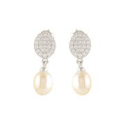 Discover timeless elegance with these captivating "Shini" drop earrings. Crafted in gleaming silver, they showcase a brilliant white freshwater pearl hanging delicately beneath a sparkling cluster of white stones. Their refined design makes them a versatile accessory, ideal for both traditional wear and contemporary outfits, adding a touch of subtle brilliance to your look.