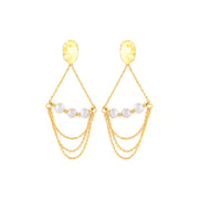 Elevate Your Style With Our Gold-threaded Pearl Dangler Earrings, A Rich Combination Of Luxury And Refinement That Makes A Stunning Impression With Every Elegant Swing.