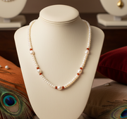 Fresh water white colour seed pearls designed with drop pearls & semi precious colour beeds stringed as one line