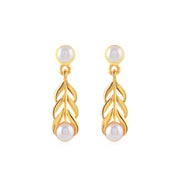 Wear These Chic Gold-plated Pearl dangler Earrings And Dazzle With Style! Inspired By Leaves Designs.