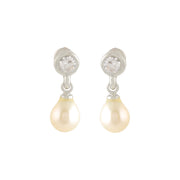 Sparkling Shini Pearl & Stone Silver Danglers