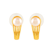 Adorn your ears with timeless elegance. These beautiful gold polish half-hoop earrings feature lustrous white freshwater pearls nestled delicately within a stylish basket-like setting. Lightweight and comfortable, they are perfect for adding a touch of classic charm to your everyday look or for subtle sophistication at special events.