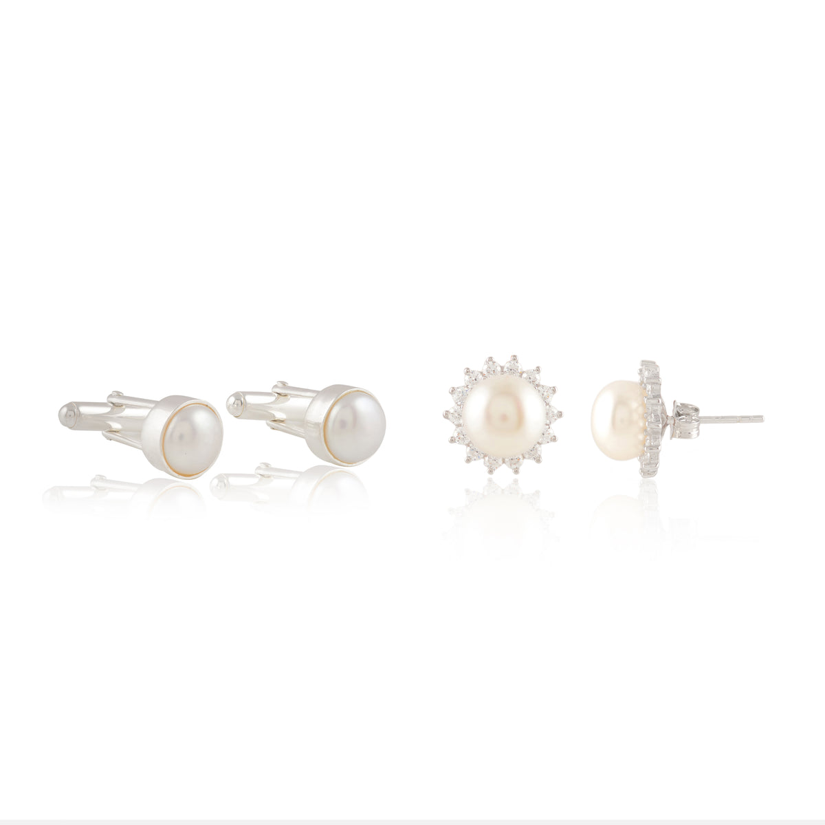 Pearl Radiance Gift Set (Pearl Stud Earrings & Pearl Round Cufflinks)