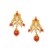 These stunning coral and pearl gold earrings are the perfect addition to any outfit. Crafted in 22K gold with exquisite attention to detail, these earrings feature a delicate combination of vibrant coral and lustrous pearls, creating a captivating and elegant look. The warm tones of the coral beautifully complement the shimmering gold setting, adding a touch of refinement to your style. Whether you're dressing up for a special occasion or adding a touch of glamour to your everyday look, these earrings are sure to make a statement. Lightweight and comfortable to wear, they are suitable for all-day wear. Treat yourself or someone special to these timeless and versatile earrings that will effortlessly enhance any ensemble.