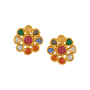 Introducing the exquisite Navaratna Gold Pearl Stud! This stunning piece of pearl jewelry is a true masterpiece, combining elegance and sophistication in one design. Crafted with utmost precision and attention to detail, this stud features nine vibrant gemstones representing the Navaratna, a powerful combination of astrological gems known for their positive energy and healing properties. The centerpiece of this stud is a lustrous pearl, symbolizing purity and grace. Surrounding the pearl are eight dazzling gemstones, each carefully chosen to enhance the overall beauty and significance of the piece. From the fiery ruby to the serene blue sapphire, every gemstone in this stud contributes to its enchanting allure. Not only does the Navaratna Gold Pearl Stud exude timeless beauty, but it also holds deep meaning and significance. Believed to bring luck, prosperity, and harmony to the wearer, this stud is more than just a piece of jewelry – it is a symbol of positivity and well-being. Designed to be versatile and suitable for any occasion, this stud effortlessly complements both formal and casual attire. Whether you're attending a glamorous event or simply adding a touch of elegance to your everyday look, the Navaratna Gold Pearl Stud is the perfect choice. Indulge yourself or surprise a loved one with this extraordinary piece of jewelry. With its captivating design and meaningful symbolism, the Navaratna Gold Pearl Stud is sure to become a cherished addition to any pearl jewelry collection. Embrace the beauty and positive energy it brings, and let it be a constant reminder of the precious moments in life.