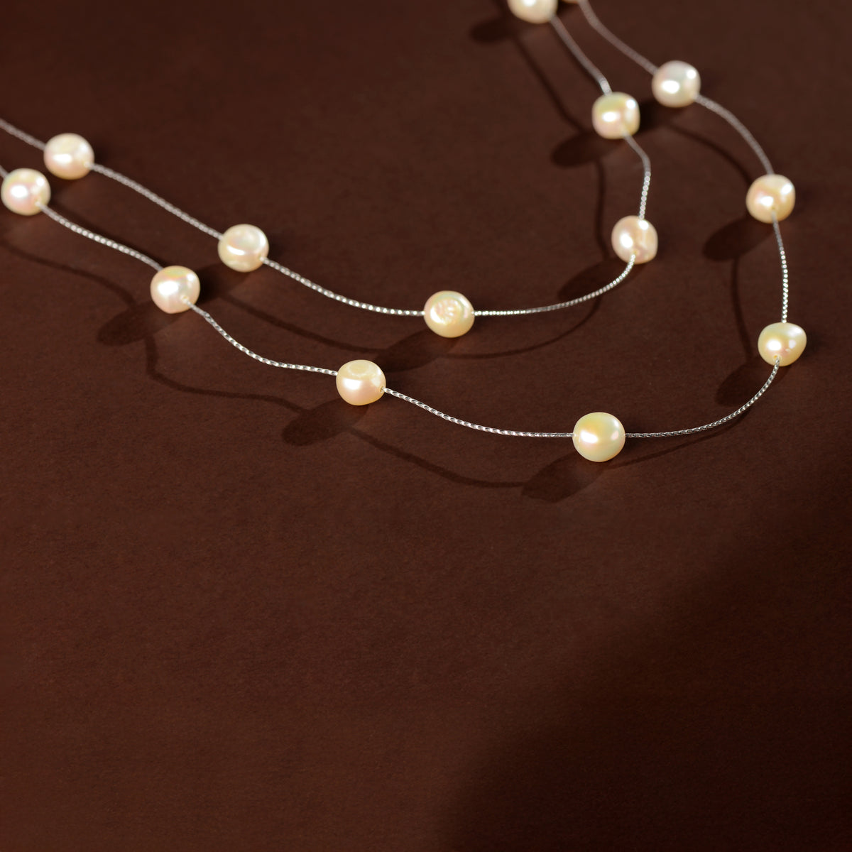 Grey Baroque Pearl Station Necklace (Feshwater Baroque Pearls on Silver Chain)