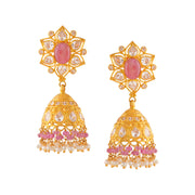 Gold Pearl Jhumka Earrings are a classic and timeless piece of jewelry that features intricate gold filigree work and lustrous pearls. The distinctive bell-shaped design of the jhumka, combined with the elegant pearl drops, creates a look that is both traditional and stylish. These earrings are perfect for adding a touch of glamour to any ethnic or fusion outfit.
