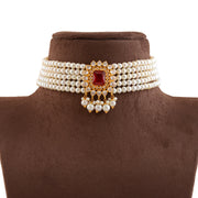 The gold pearl and ruby choker necklace is versatile and can be attired both ways, which means it's suitable for both formal and casual occasions. Its beauty and simplicity make it a must-have accessory for anyone who loves wearing elegant and timeless jewellery.