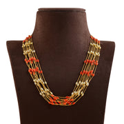 Behold the breathtaking beauty of the Gold Pearl Necklace with Coral - a mesmerizing piece of jewelry that captures the essence of elegance and charm. The enchanting blend of gold, pearls, and coral creates a striking contrast that is both alluring and captivating.
