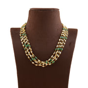 The warm glow of the gold complements the natural hues of the pearls and emerlads, adding a touch of luxury and sophistication to the necklace. It's a versatile accessory that can be worn with any outfit, from a casual day look to an evening dress.