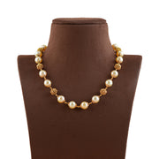 This timeless south sea pearl necklace with gold nakshi balls is a magnificent piece of jewelry that embodies the elegance and grace of traditional Indian craftsmanship that can be worn on special occasions or paired with formal attire for a regal look.