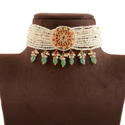 A gold pearl choker is a classic piece of jewellery that adds a touch of sophistication and class to any ensemble. The choker is made up of a delicate gold chain that wraps around the neck and is exaggerated with glossy pearls, creating a beautiful and intricate design.