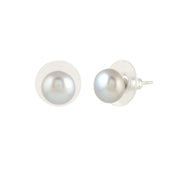 Fresh Water Button Steel Grey Color Alloy Pearl Earrings