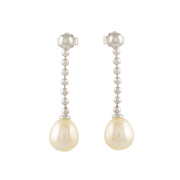 This elegant 92.5 silver earrings have a line of pearls that get larger towards the bottom, with a big, freshwater golden colour pearl as the focal point. Simple yet beautiful, they’re great for both formal events and everyday wear.