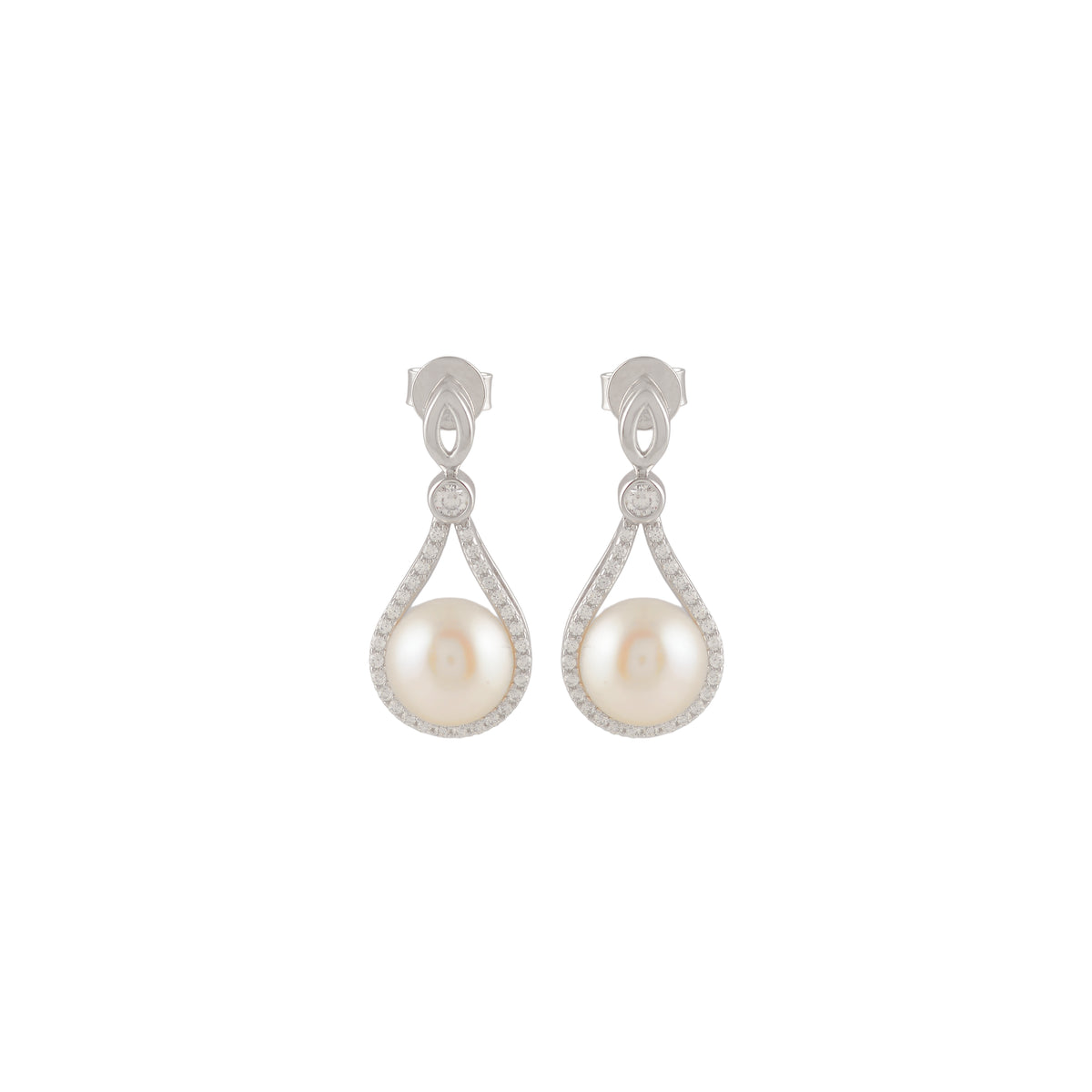 Softly luminous and impeccably balanced, the Pearl Opaline Drop features a radiant pearl suspended within a refined, pear shaped silhouette. A delicate halo of shimmering accents traces the form, enhancing the pearl’s natural glow without overpowering it. Designed to move gracefully with every turn, elegant, timeless, and effortlessly refined. Perfect for evenings that call for understated brilliance and heirloom worthy charm.