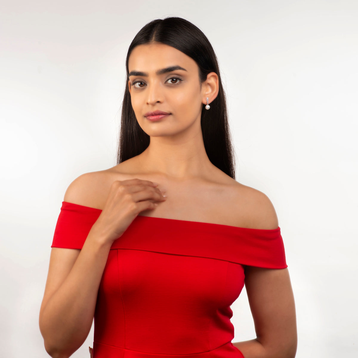 A radiant pearl drop anchored by a trail of softly shimmering accents, Pearl Luminé captures romance through light and movement. The layered sparkle draws the eye downward, allowing the pearl’s natural glow to take center stage. Delicate yet expressive, this design feels intimate, graceful, and effortlessly timeless.