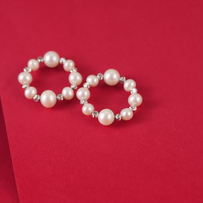 Ivory Link Pearl Bracelet ( Fresh water Pearls With Gold Polished Clip In Silver )