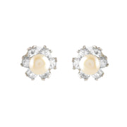 Fresh Water Button Pearl & CZ Stones Earrings