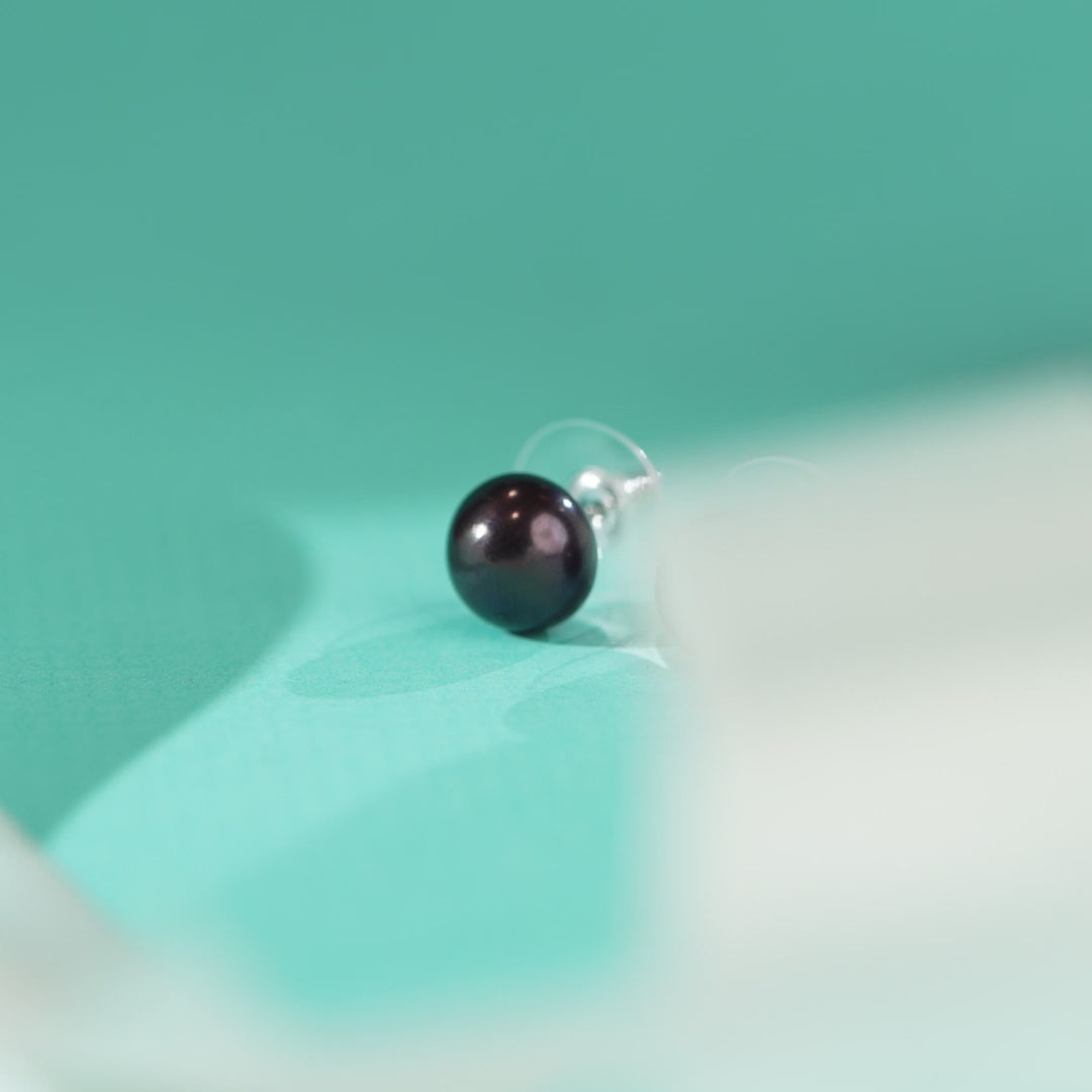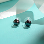 Black Pearl Stud Earrings in Sterling Silver