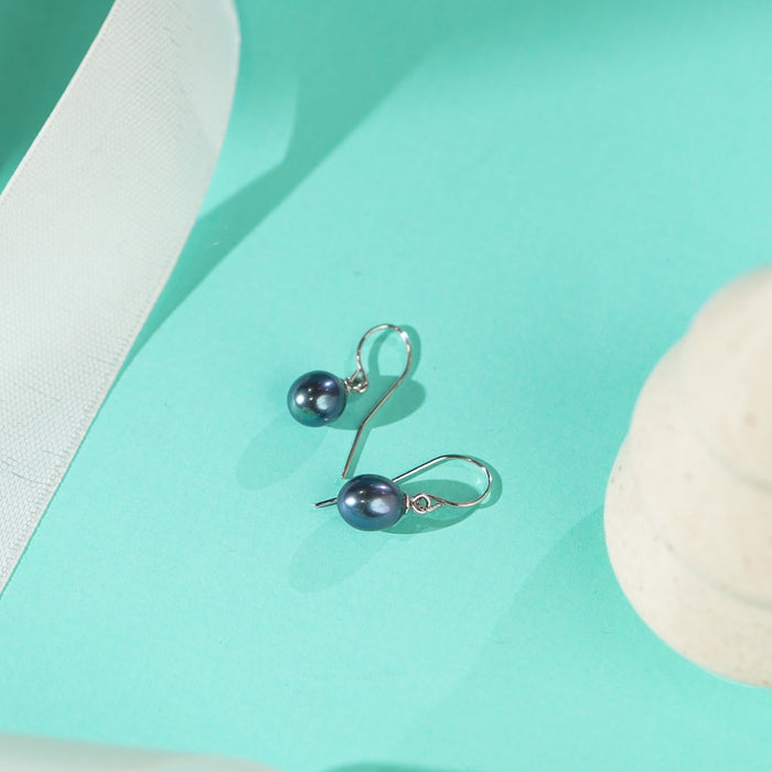 Adorn yourself with the striking elegance of these peacock blue freshwater pearl drop earrings. Each pearl shows rich blue-green tones with soft violet iridescence, inspired by a Tahitian-style look. Finished with hypoallergenic sterling silver hooks, they offer a lightweight, comfortable dangle perfect for both everyday wear and evening occasions.