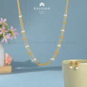 This elegant 5-layer gold pearl chain set comes with matching earrings, adding a touch of sophistication to any outfit. With high-quality pearls and a versatile design, this set is suitable for any occasion. Upgrade your jewelry collection today and shine with confidence.