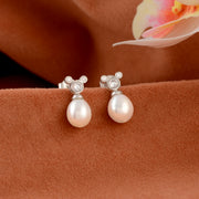 Classic Pretty White Pearl Stud Earrings, Featuring Double Lines Of Exquisite Aaa Cz Stones For A Timeless And Sophisticated Look