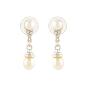 Adorn yourself with these exquisitely designed drop earrings, featuring lustrous real white freshwater pearls. The sophisticated top stud showcases a central pearl accented with delicate beaded or tiny stone clusters, from which a pristine teardrop-shaped white pearl gracefully dangles. These versatile "white pearl earrings" offer a blend of classic charm and intricate detailing, perfect for enhancing your elegance for any occasion.