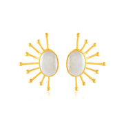 These Exclusive Earrings, Which Feature Glossy Pearls Set Against A Gilded Half-sunflower Motif, Merge Flawless Design With Timeless Appeal.