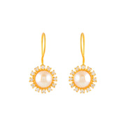 Gold Finish Round Drop Earrings with CZ Stones & Freshwater Pearls