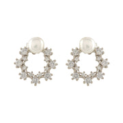 Pearl Bloom 92.5 sterling silver earrings, carefully crafted, showcase freshwater pearls set in beautiful floral designs against a shiny silver background. Embrace timeless elegance and let your style shine with every wear.