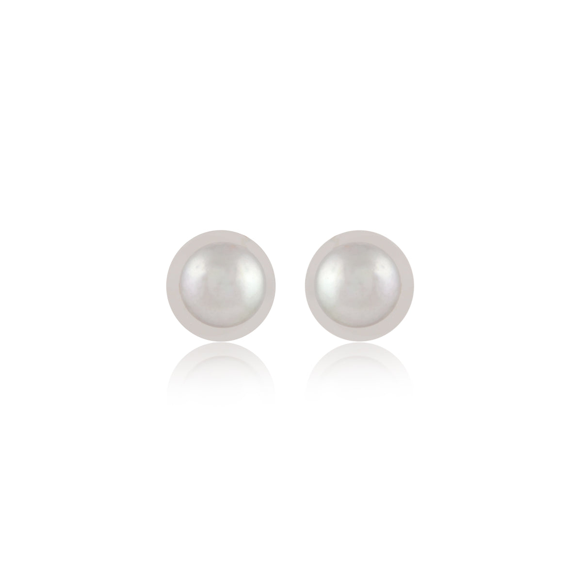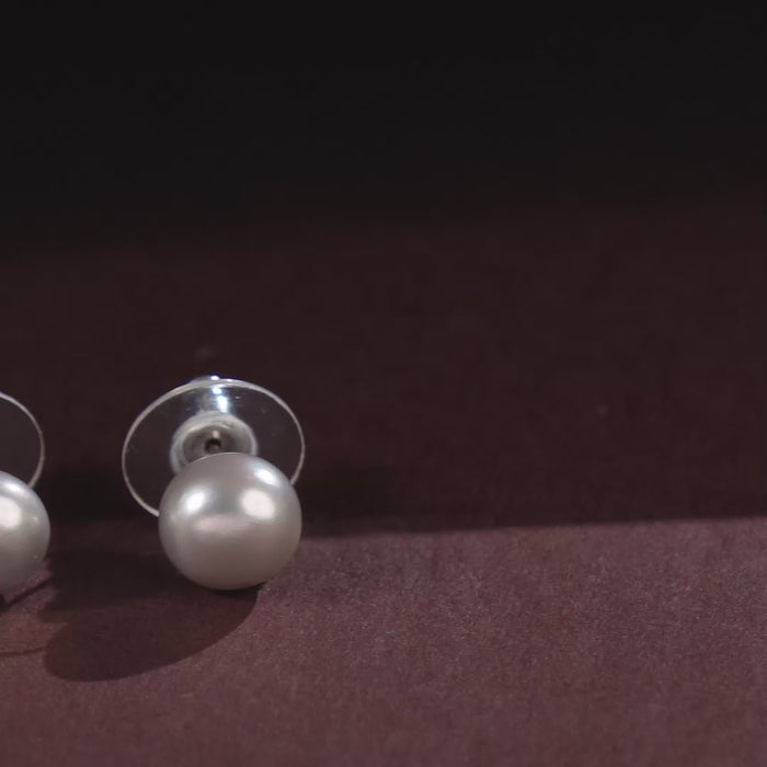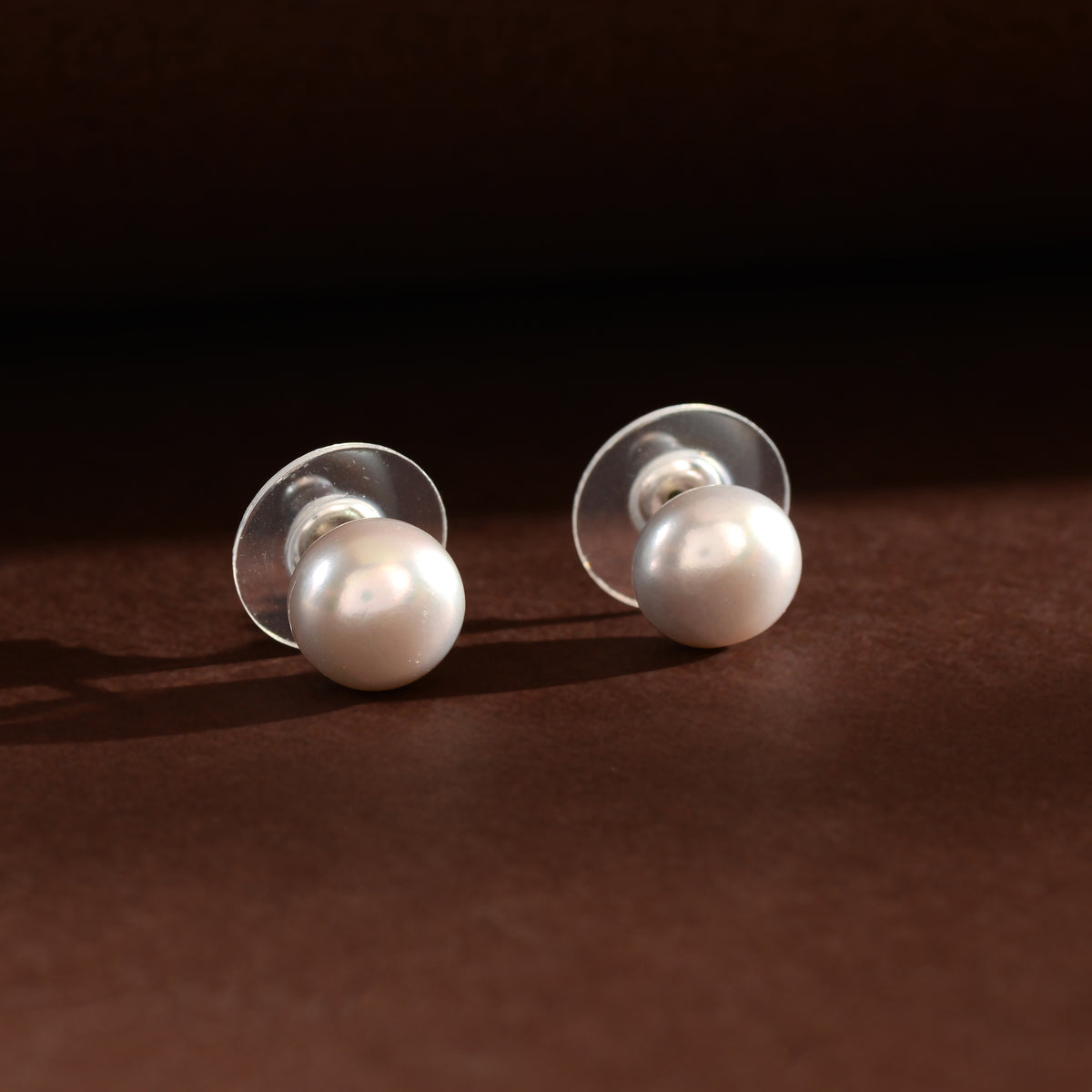 Silver Button Studs (Freshwater Grey Pearl Stud Earrings)