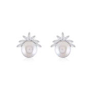 Sparkling Button Pearl Earrings Adorned With AAA CZ Stones